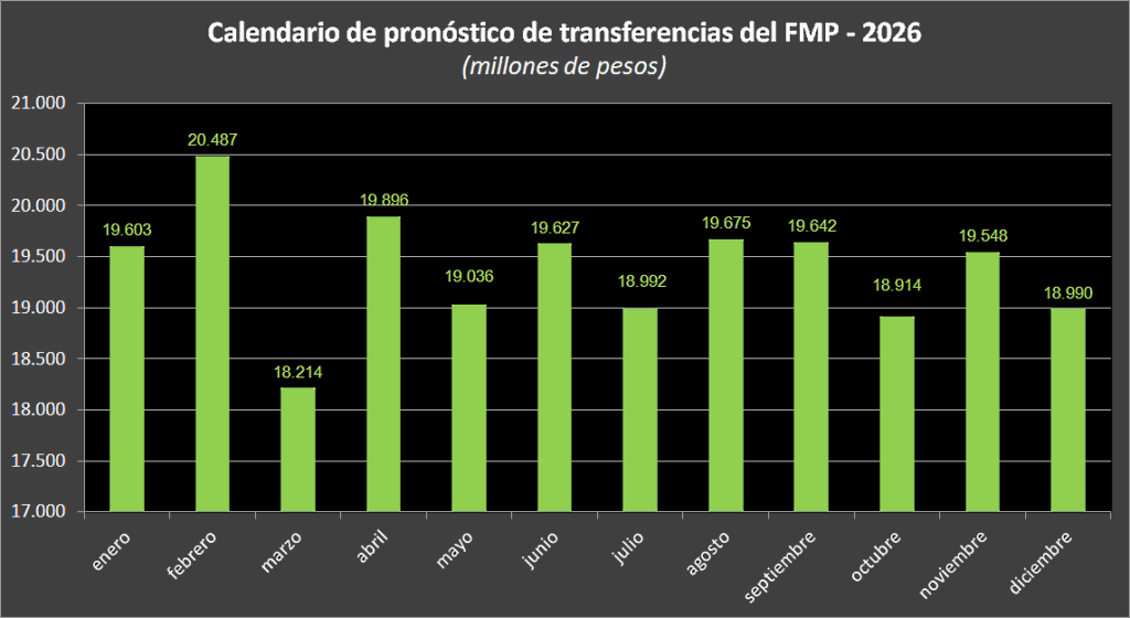 Según el calendario de la SHCP, en marzo de 2026 se esperan los menores montos entregados por el FMP, con 18 mil 214 mmdp, un mes después de haber registrado el monto más alto con 20 mil 487 millones de pesos.