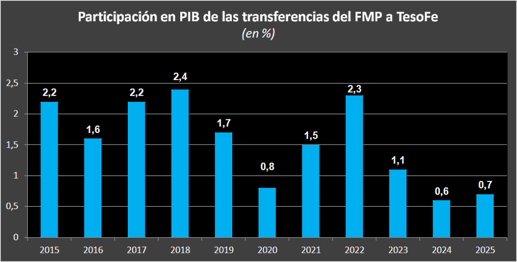 En los últimos once años, además, las transferencias del Fondo Mexicano del Petróleo (FMP) a la Tesorería de la Federación (TesoFe) cayeron 160 mil 177 mmdp, al pasar de los 400 mil millones de pesos, a los 239 mil 823 mmdp de 2025, un descenso de 40 por ciento.